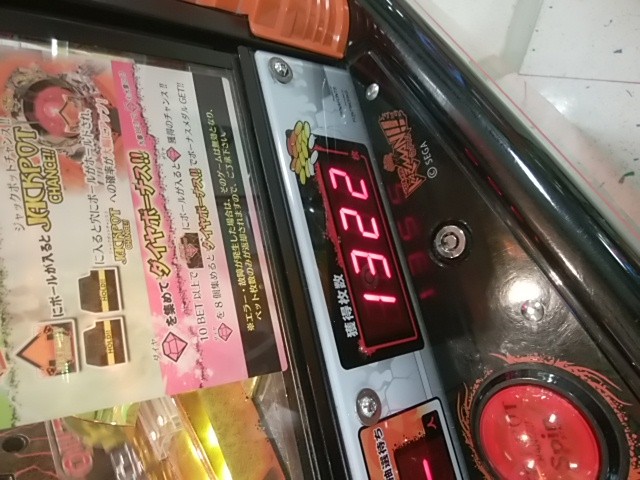 3段目×?の倍率ですけど、やっぱわけわかりませんな。今日の出来事:HOLDなし状態で3倍しか出ず→JPC手前をHOLD→JPCIN、SJP獲得→再びHOLDなし となったところで、なぜか9倍が出た…。それもSJP取った後ハマったわけでもなく、取った直後。BETは最初から最後まで全部99。SJP取った後に3倍しか出なくなるならわかるんだが、全く逆の状態なわけで。9倍言われた時は思わずツッコみました。