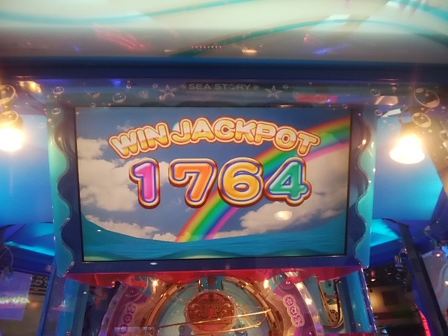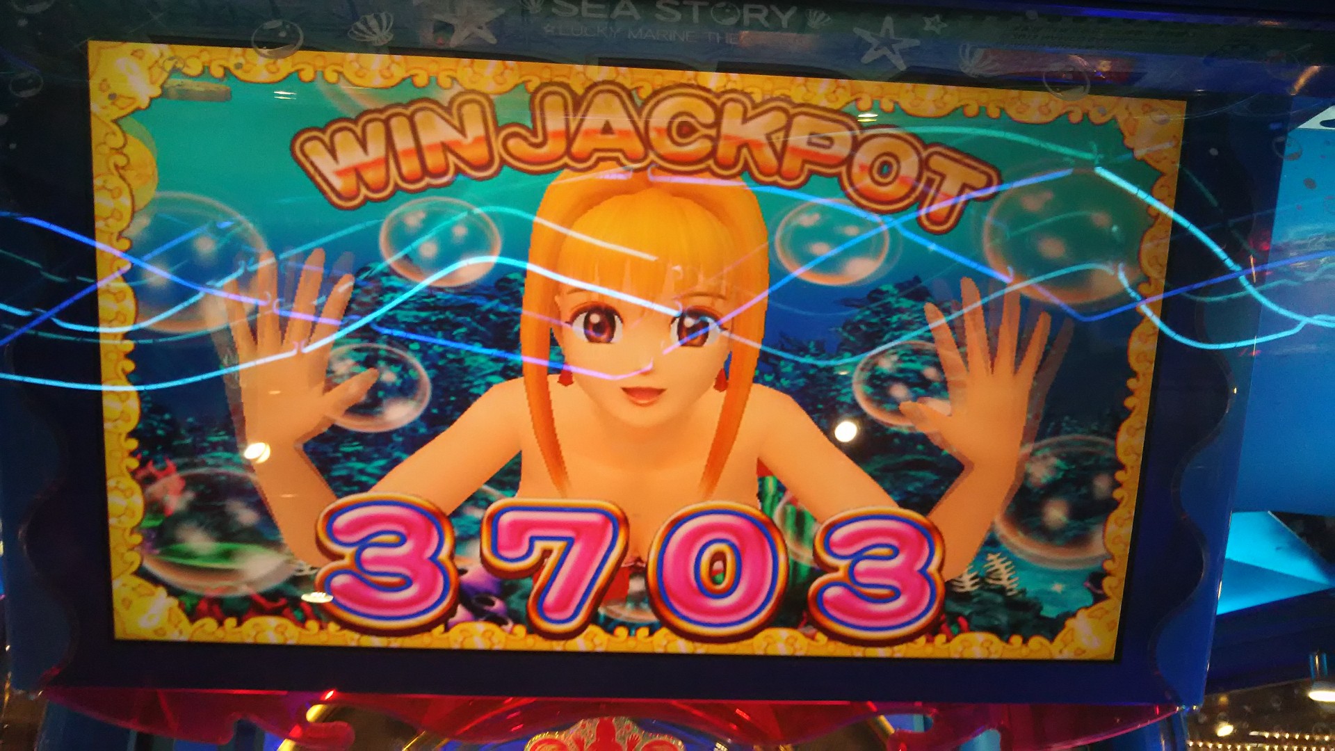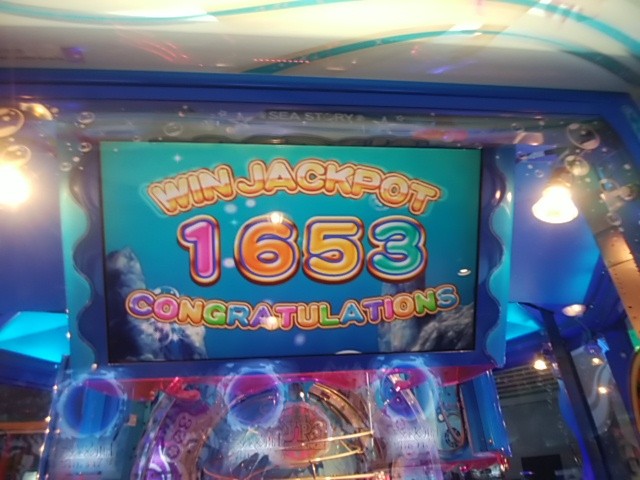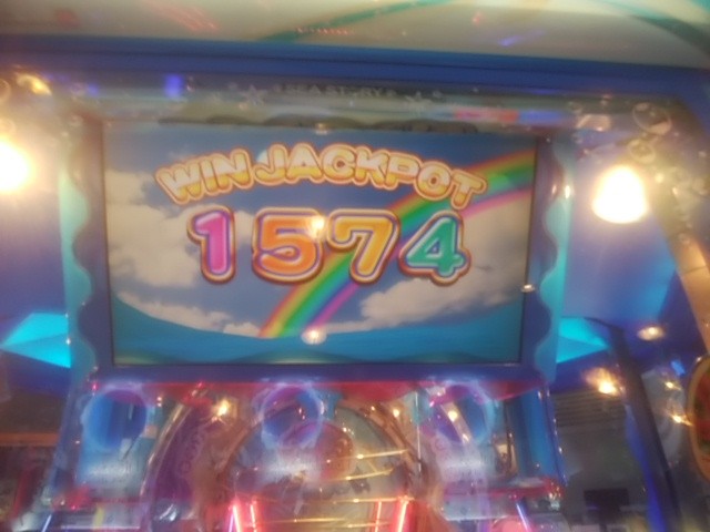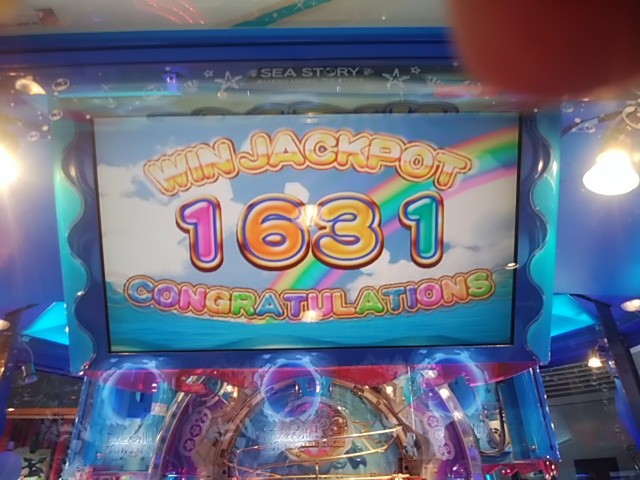 今日は常連のおっちゃんから席を譲ってもらったとこでジャックポットが当たりました。