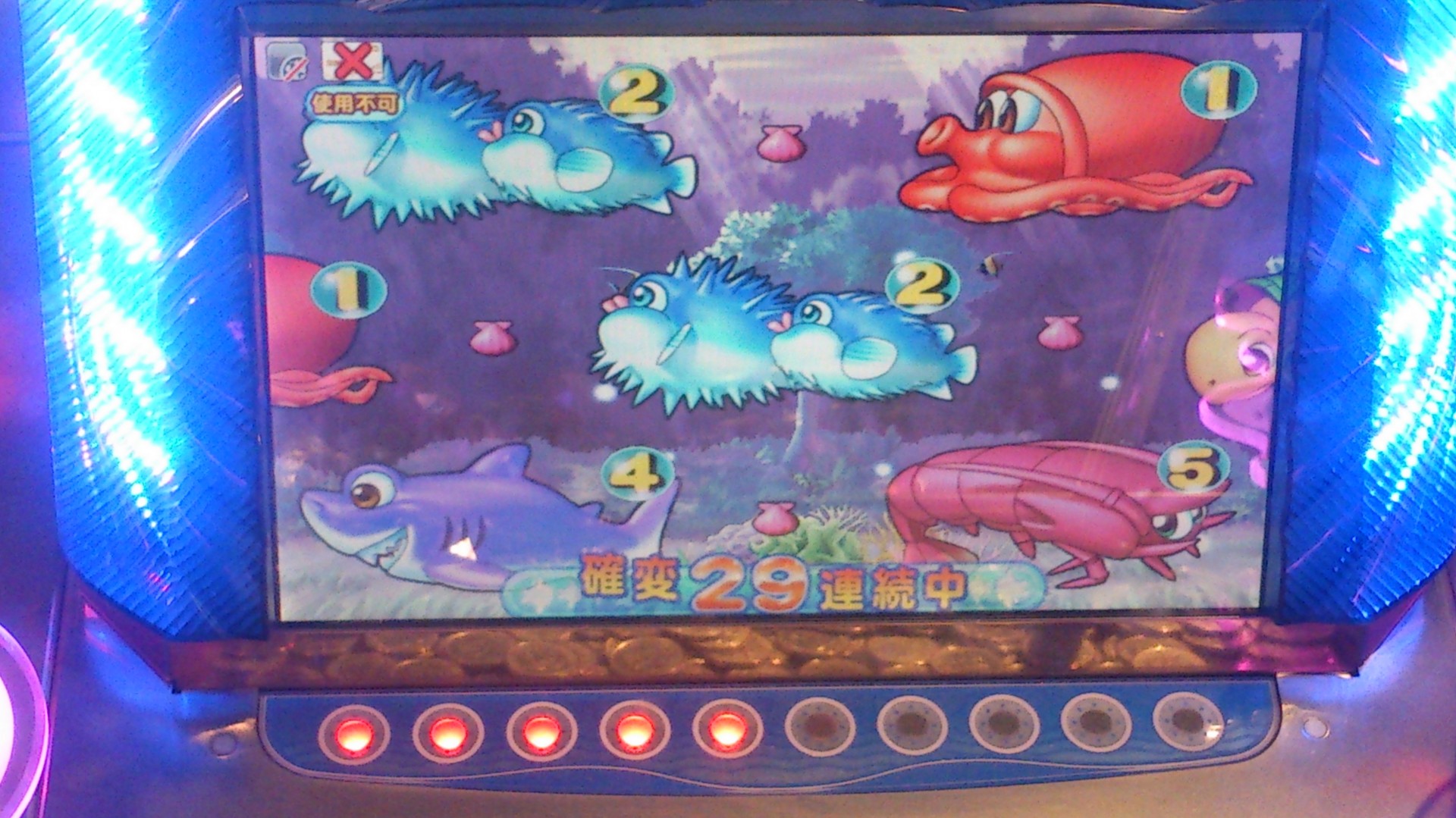 メダル、多分4000枚は突っ込みましたが、マリンタイム1回と確変24連、ラキボ2回のみで後は全く当たりなし…。