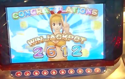 どうせ100枚だろうと思ったらまさかのJP。1700枚近くを獲得。そこからさらに宝箱からラッキーボールを召喚、最低でももう1発できる感じに。が・・・もう1回ウェーブルーレットからまたJPチャンス。それがなんとJP獲得。私も今まで経験したことのないJP in JPを獲得しました。残念ながらラッキーボールからは100枚でした。しかし、おかげ様でカップ1個ギリギリから箱1.5個分に蘇りました。本当にありがとう、マリンちゃん・・・!!