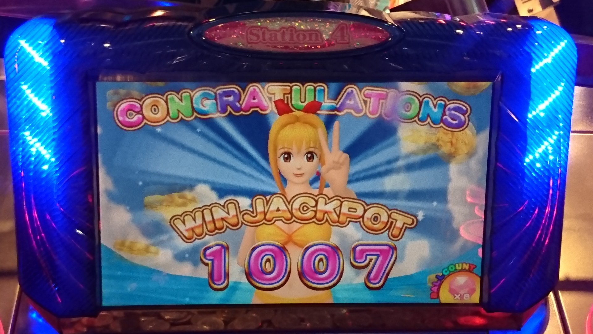 1ステのジャックポット待ちして100…今度は3ステの人…ジャックポット2連…そのジャックポット待ちが長いっつーの。そんな私は二回とも100という( ´△`)引き悪ー…