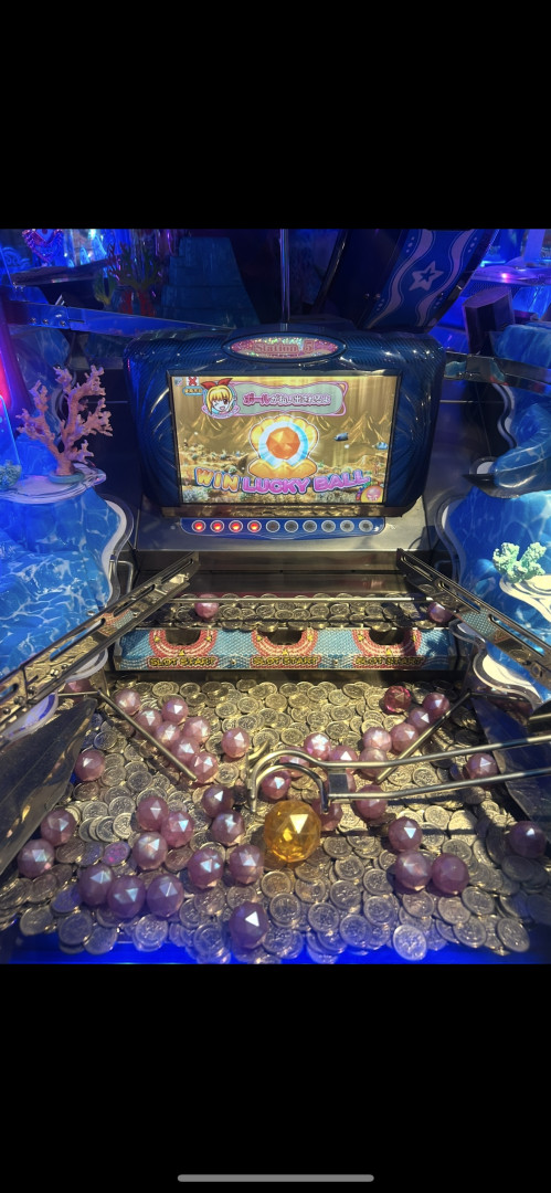 その後、JP2300積みあがった頃、客が帰った隣のST見ると、何とフィールドにLuckyボール放置。さらにそのSTは、なぜがマリンタイムが始まっているという目を疑う光景が。普通だったら即ST移動のところ、自分のSTにもLuckyボールが落ちる寸前で、隣のSTより確変が来やすかったこともあり移動を迷っていると、小学生らしき姉妹がすぐに着席。結果、マリンタイム400に加え、カニタコJPCから300当り。JP当たりでなく安心していたところ、その後自分のLuckyボールはお約束の100、次にJPCとなった姉妹のLuckyボールは、JPの大当たりという嫌な予感的中。